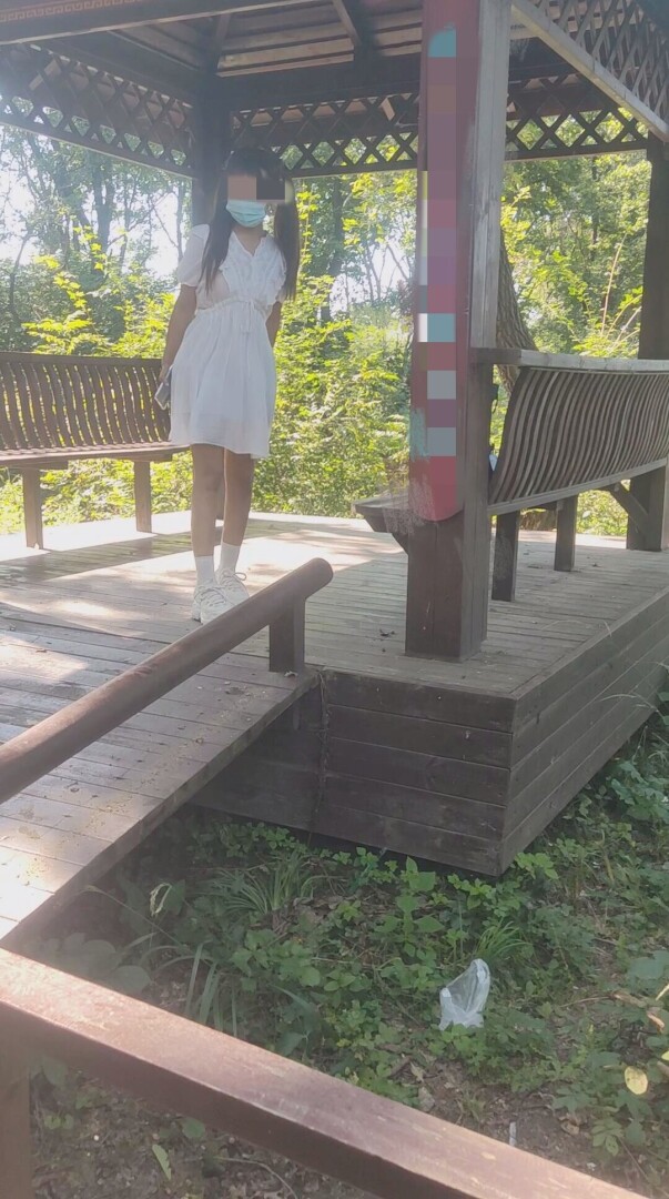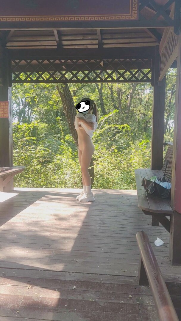 自从上次露出以后,老婆喜欢上了这种露出的刺激,今天找了个山顶的小亭子又玩一次,露出后下面水汪汪的。自己还说要是露出完有个弟弟反复抽插我一顿该多好啊!